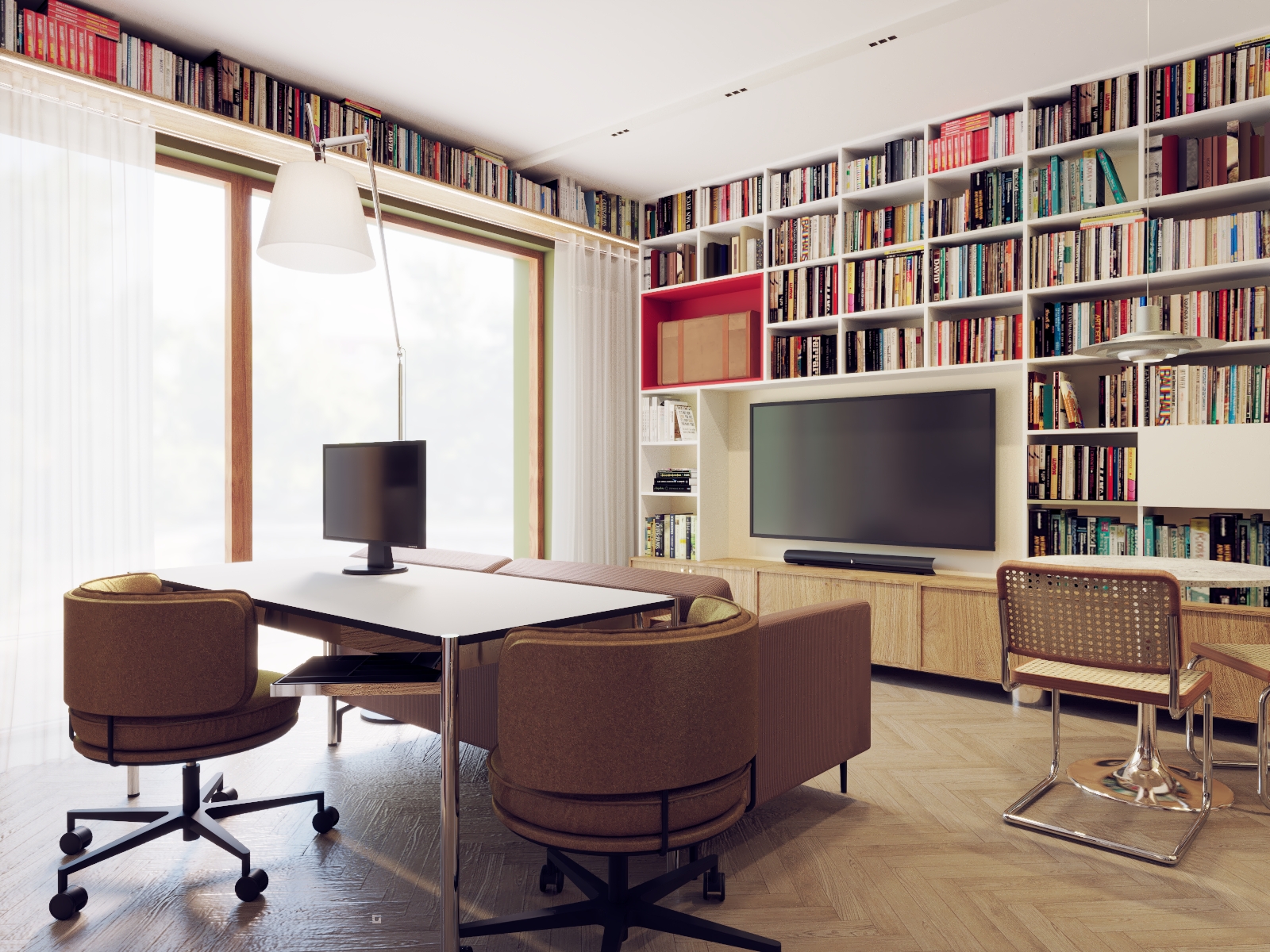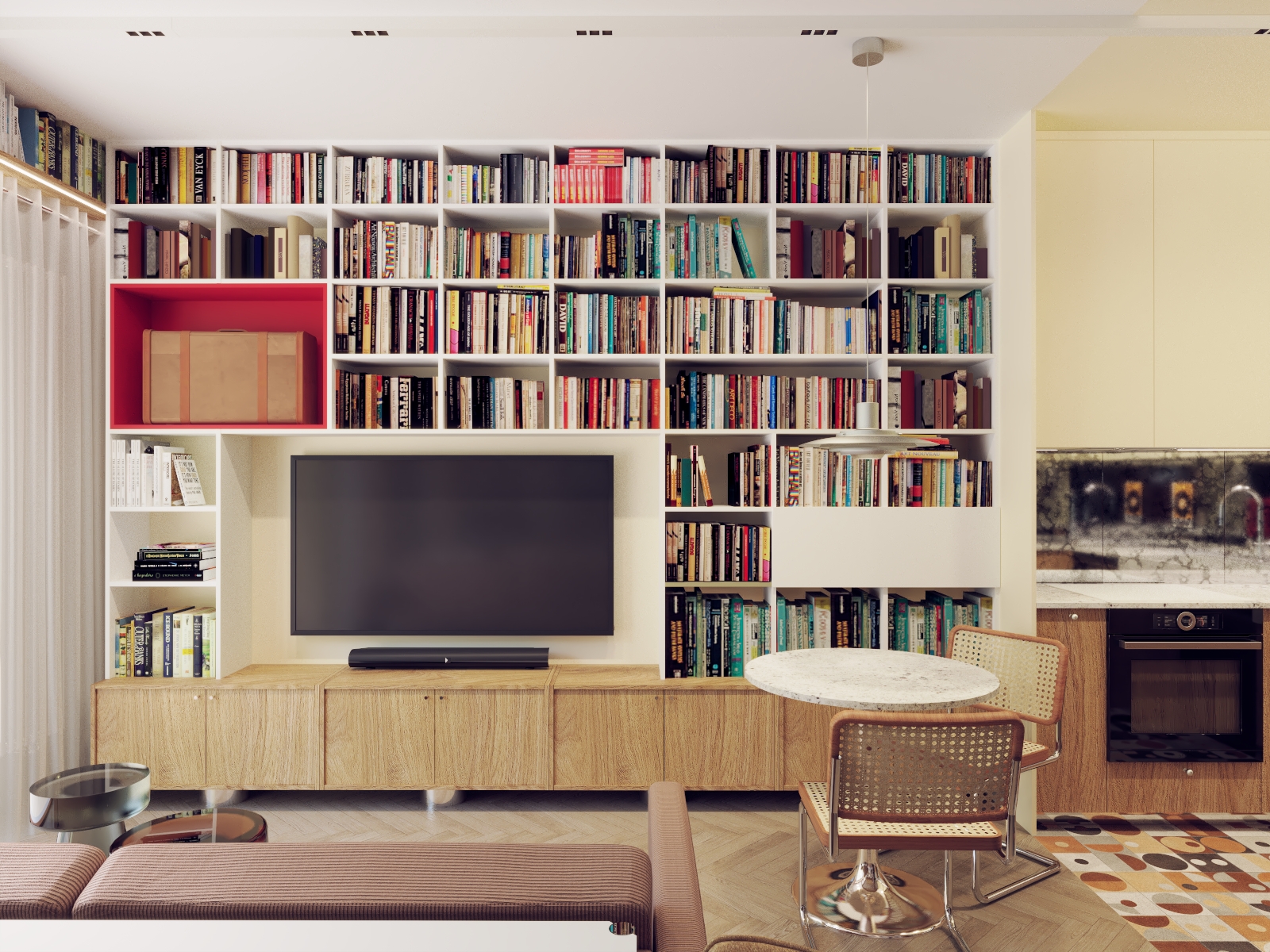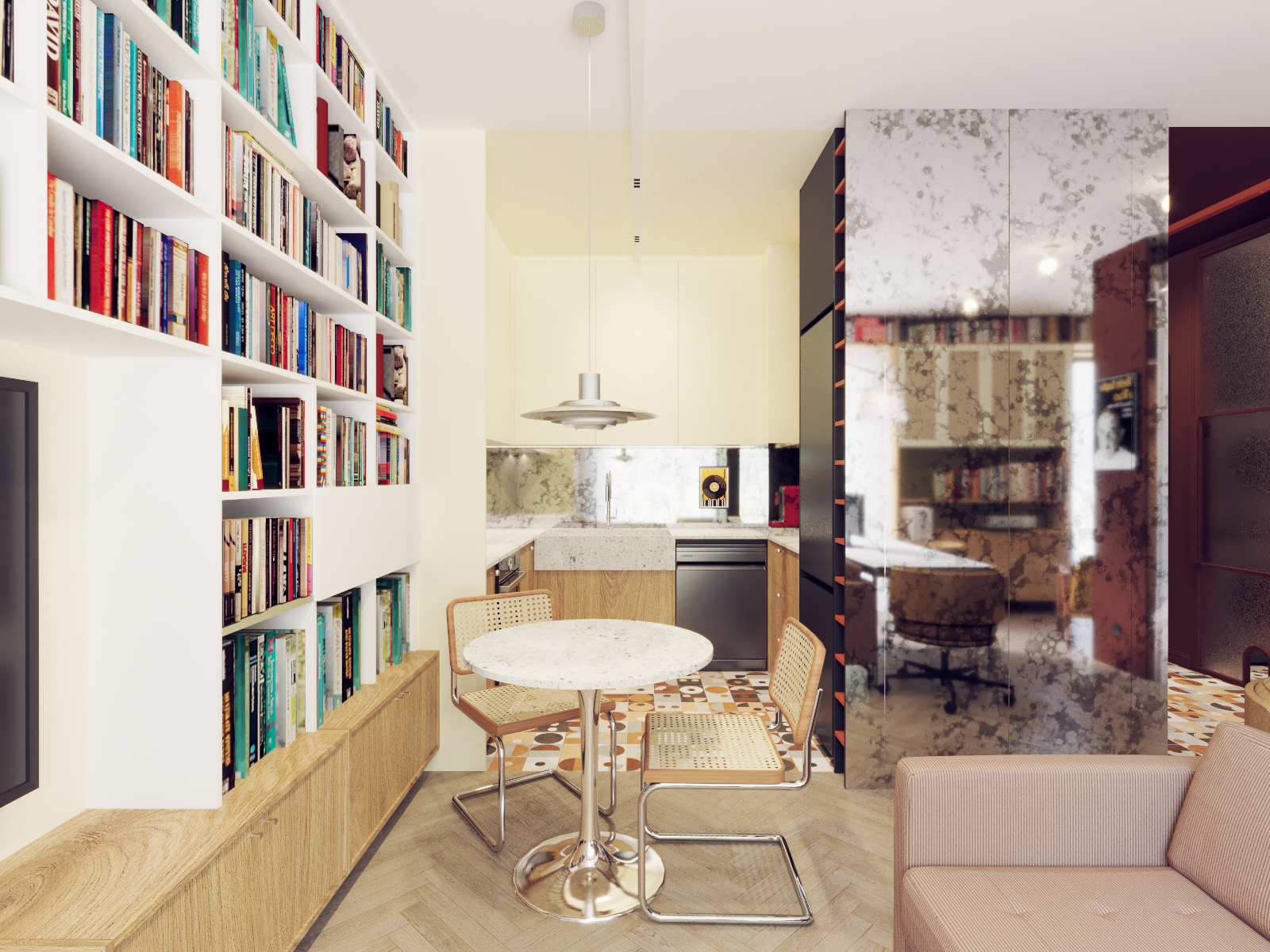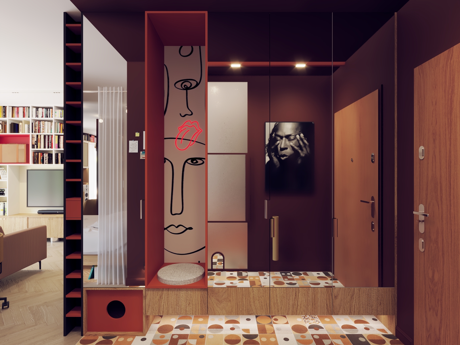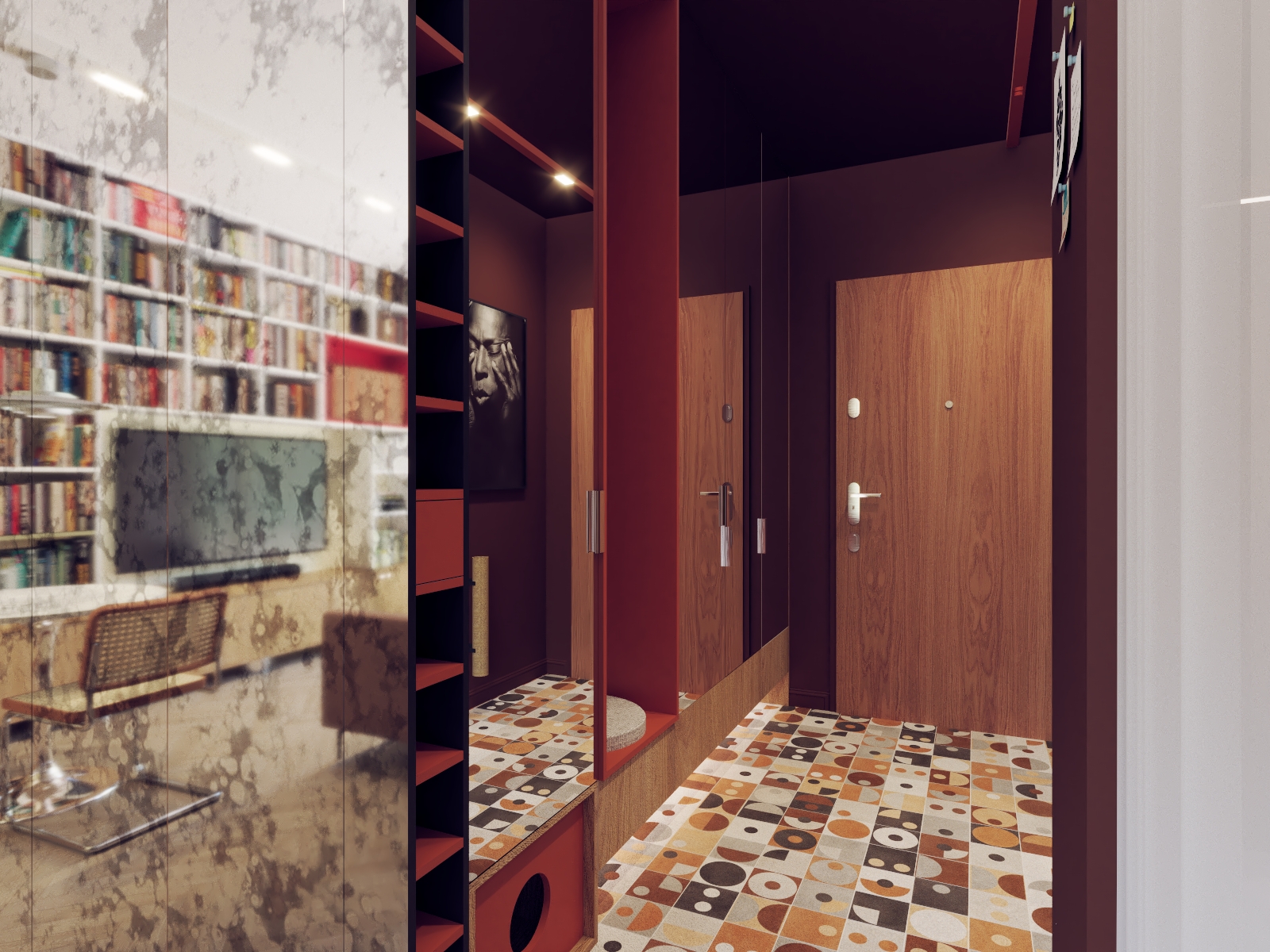 Praca nad tym projektem była wyzwaniem niemal... logistycznym! Moi Klienci podjęli decyzję o wyprowadzce z dużego domu do znacznie mniejszego mieszkania. I co ciekawe, oni żyją w Warszawie, ja w Łodzi, a to mieszkanie jest w Gdyni :) Na początku, gdy zobaczyłam jak ogromny księgozbiór posiadają, a chwilę potem, gdy poznałam szczegółowe wytyczne byłam lekko przerażona. W nowym mieszkaniu miało zmieścić się dodatkowe miejsce do pracy, osobna sypialnia, chociaż niewielki stół do posiłków i strefa wypoczynkowa. Rozmawialiśmy o tym długo, poznawaliśmy się, a czas umilał nam właśnie Miles Davis w tle - zapamiętam to na zawsze. Potem rozgryzłam ten układ w kilku propozycjach, wysłałam trzy z nich i okazało się, że to nie to. Wtedy wyciągnęłam mojego czarnego konia (tak naprawdę to wtedy nie wierzyłam po prostu w tę propozycję), w której wymyśliłam kompletną przebudowę, ze specjalnym miejscem na kącik czytelniczy. Tak - okazała się strzałem w dziesiątkę. Potem ubraliśmy to wszystko w lekko zwariowany klimat z licznymi nasyconymi kolorami, z wzorami i z designerskimi dodatkami nawiązującymi do ulubionych lat 60. Dla mnie to mieszkanie już na zawsze pozostanie symbolem idealnej, partnerskiej współpracy architekta i inwestora i wzajemnego zaufania, które razem mogą dać tak nieoczkiwane i bardzo indywidualne efekty - bo i owszem, to wnętrza nie jest dla każdego!